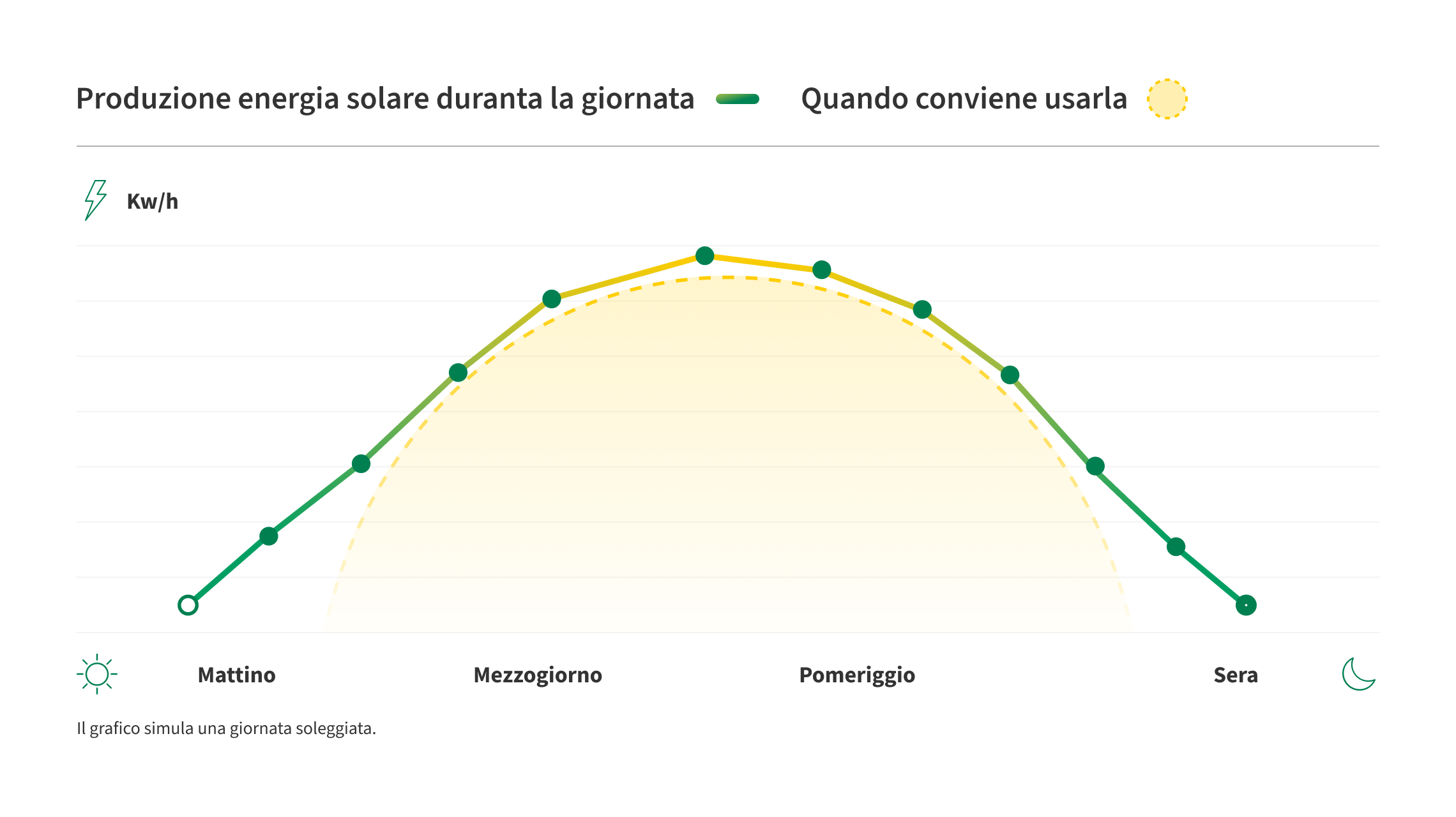 Quando c’è il sole, il tuo pannello raggiunge la massima produzione di energia nelle ore centrali della giornata.
