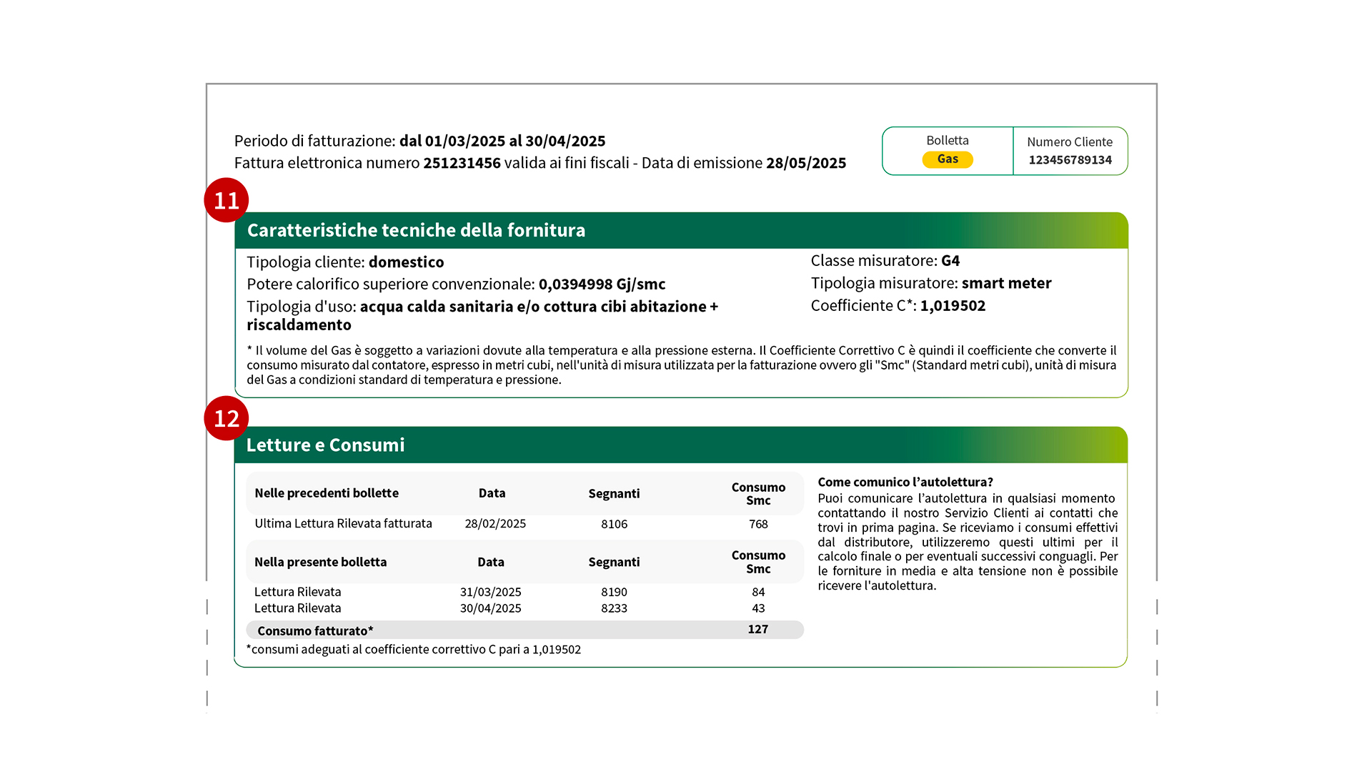 7. Dati identificativi del punto di fornitura, ossia l'indirizzo e il POD o PDR.