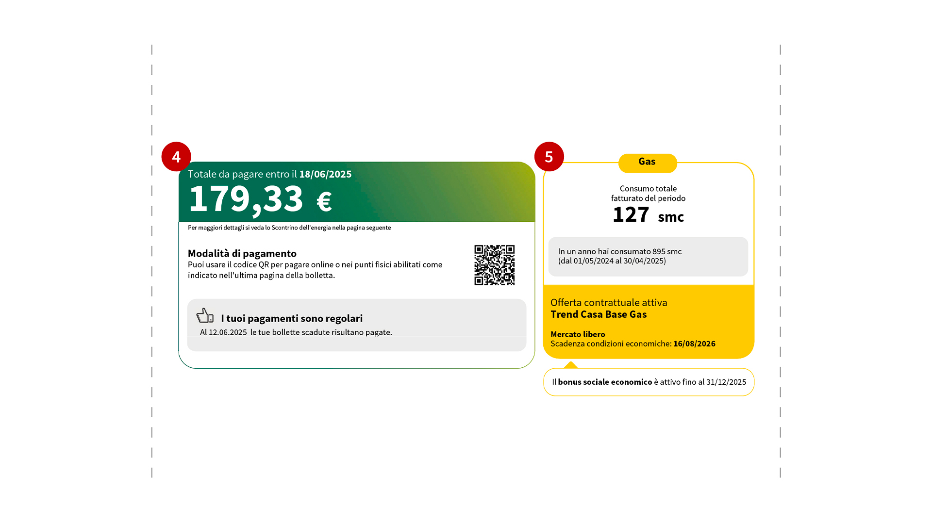 8. Uno schema semplificato degli importi fatturati aggregati secondo una struttura quantità x prezzo medio, distinguendo tra Quota per consumi e Quota fissa e, solo per il settore elettrico, Quota potenza. All'interno della singola voce di aggregazione, la Spesa per la vendita di energia elettrica è determinata in base ai corrispettivi di vendita previsti dal tuo contratto, mentre la Spesa per la rete e gli oneri generali di sistema è definita dall'ARERA, e comprende gli importi per le attività di trasporto, di distribuzione locale e di misura.